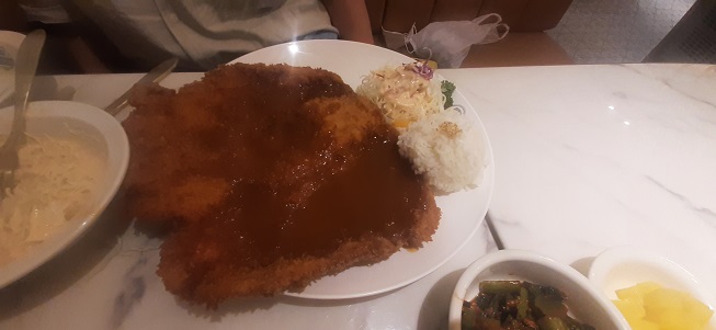 맛은 일단 전형적인 돈까스 맛입니다. 아쉬운점은 고기를 너무 얇게 만들어서